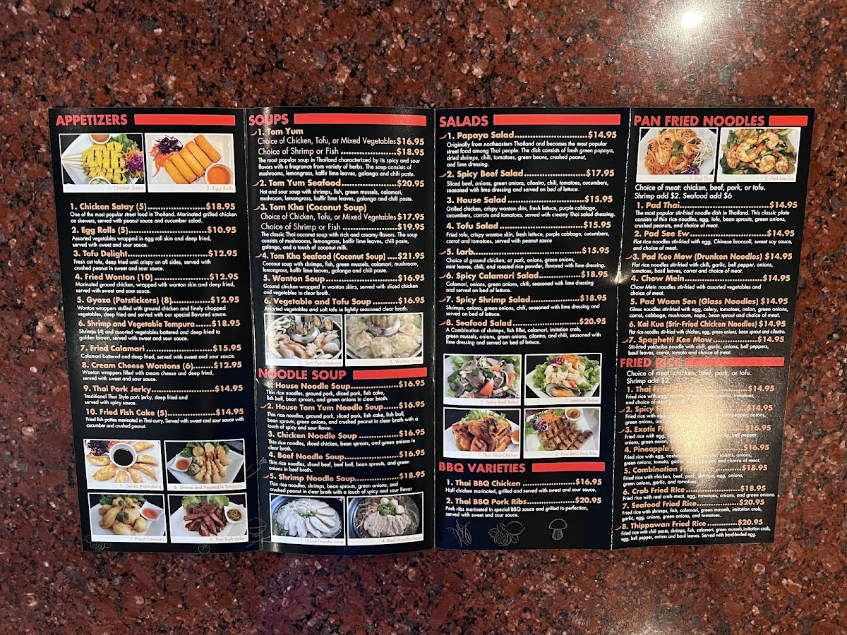 Thirsty? Pair your meal with refreshing beverages like the classic Thai Iced Tea for just $3.50, which sweetens the senses with its creamy texture and distinct tea flavor. If you're looking for something unique, try the Thai Tea Float, a delightful twist that adds a fun element to your meal.