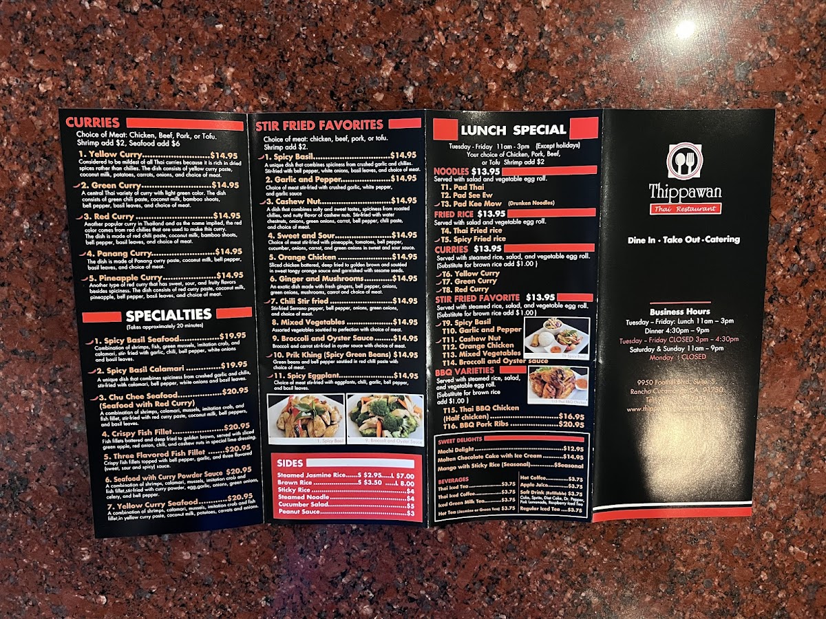 Welcome to Thippawan Thai Restaurant, an authentic gem located in Rancho Cucamonga, CA, where the vibrant flavors of Thailand come alive in every dish. Nestled at 9950 Foothill Blvd S, this restaurant is a haven for anyone craving the bold and comforting cuisine that Thai culture is renowned for.